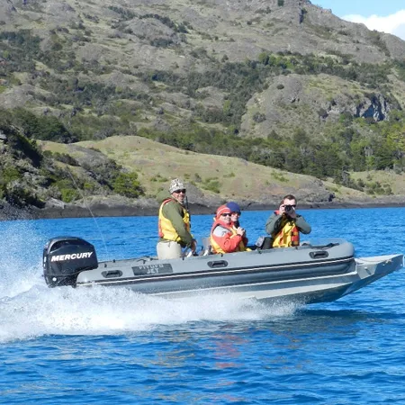 Navegación en lancha desde Puerto Guadal por el Lago General Carrera durante 1 hora, contemplando los hermosos paisajes de la zona. Cupo hasta 4 personas.